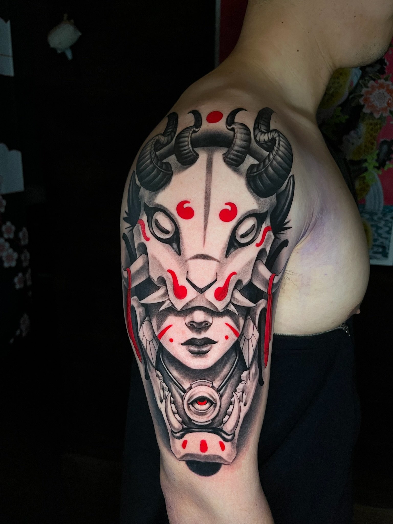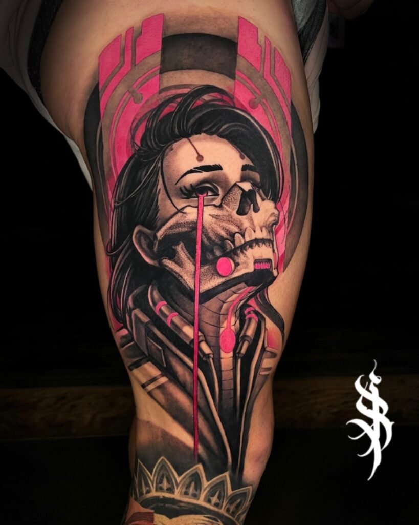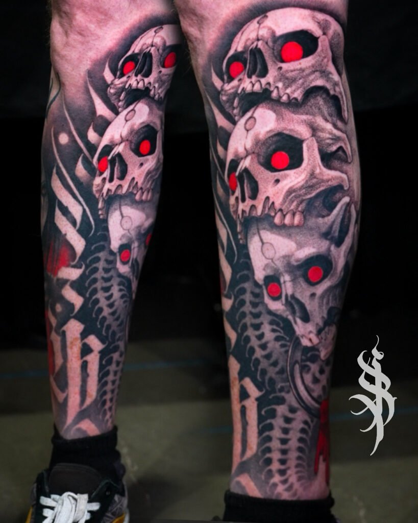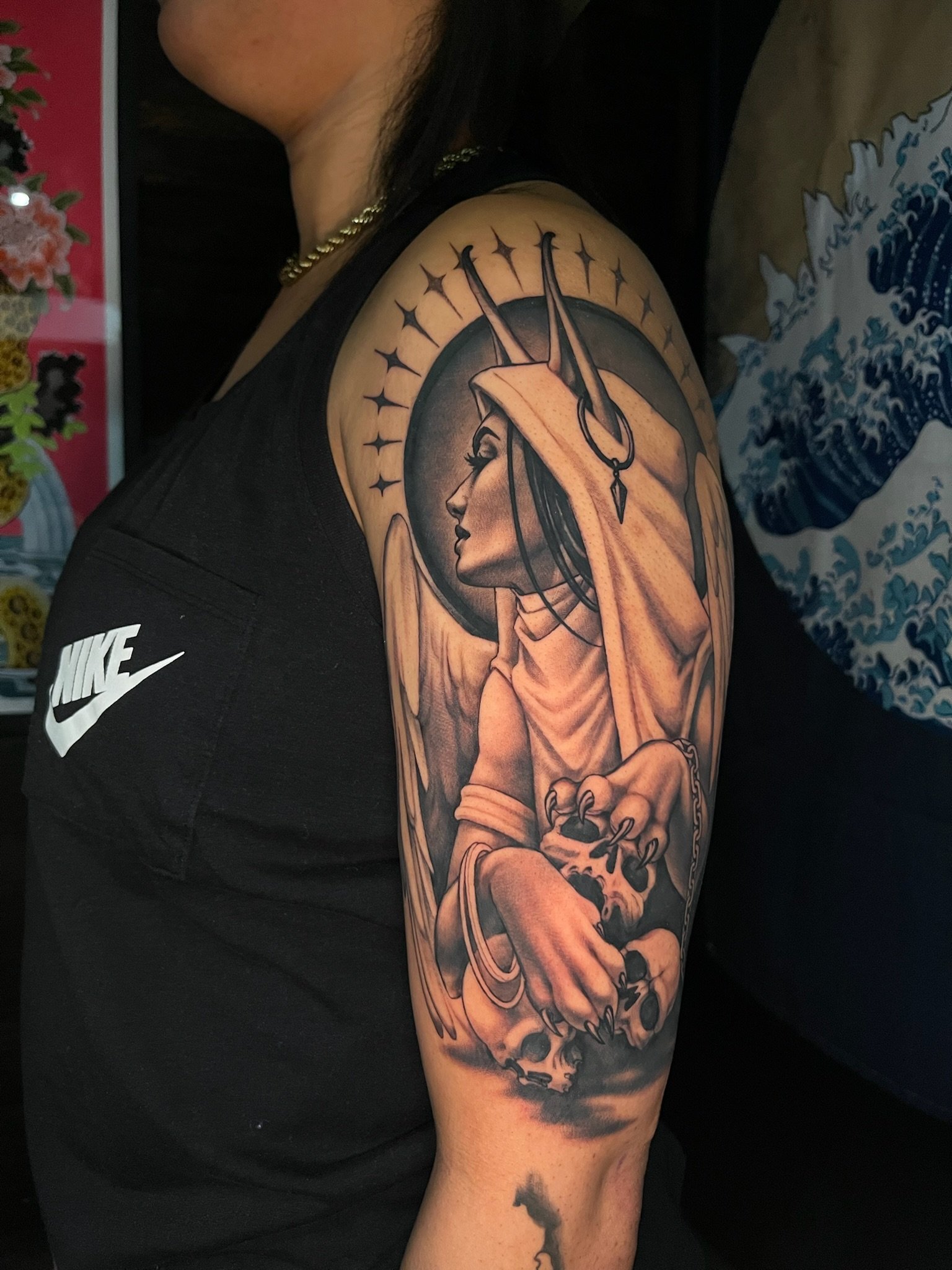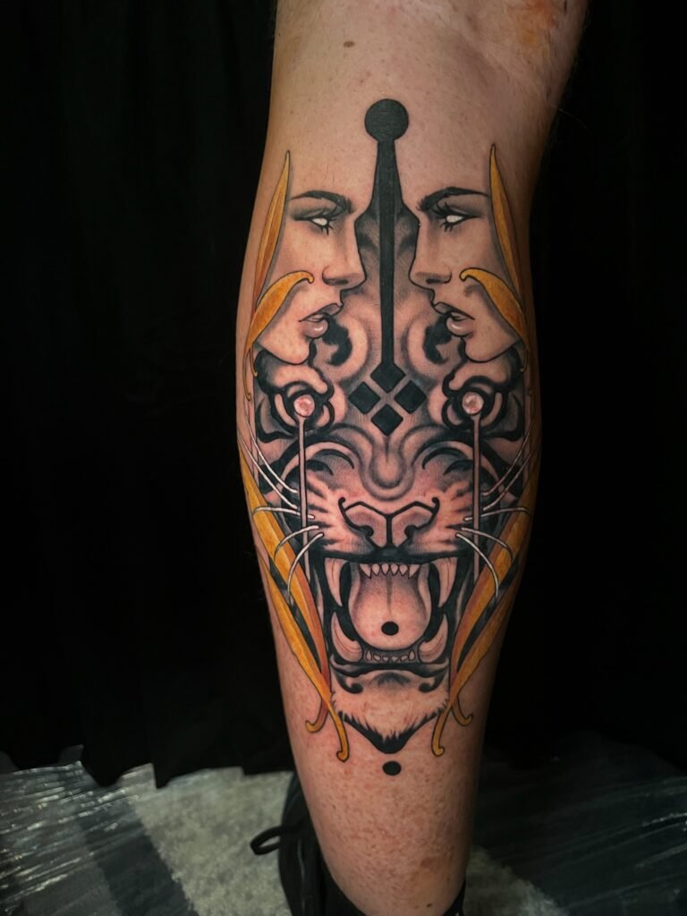 Having been heavily influenced by graphite realism and pen and ink art, Angel’s tattooing style takes on a very dark, saturated black and grey application that provides a striking platform for her realistic yet dreamlike drawing style.